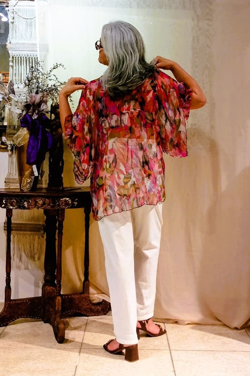 Bata Kaftan em Shiffon Estampada Pink e Rosa