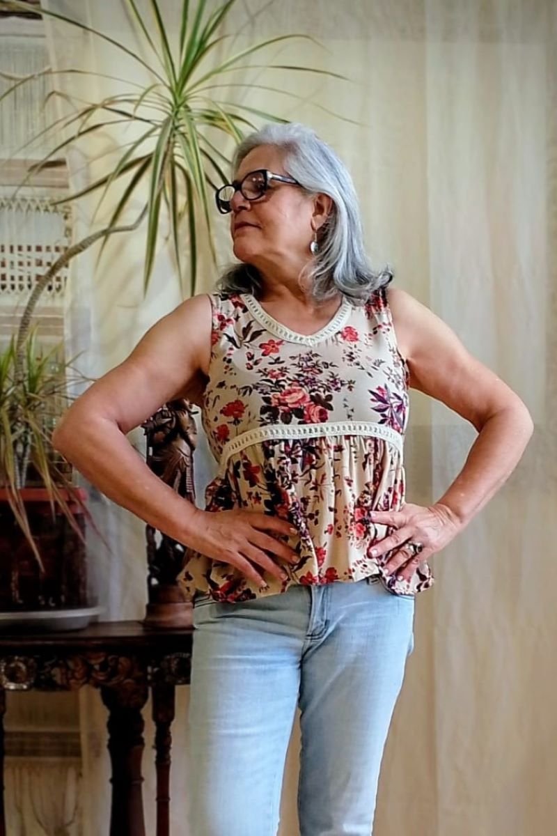 Bata em Viscolinho Regata Floral,