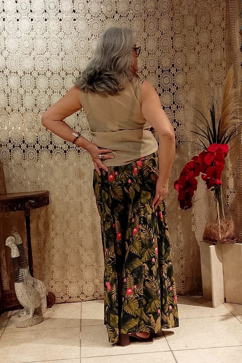 - na barra do vestido, frente e costa, com lindo detalhe de estampa